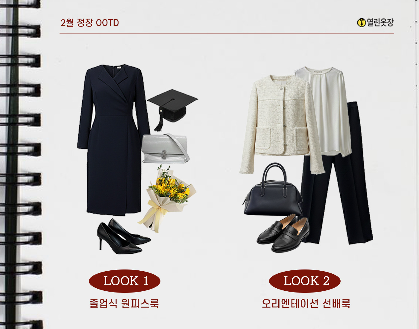 ✨ 기획ㅣ끝과 시작을 입는 2월 OOTD 하나의 여정을 마무리하고 동시에 새로운 시작을 준비하는 2월! 열린옷장을 찾은 분들은 어떤 정장을 선택했을까요? 2월의 순간들을 OOTD 코디북으로 담았습니다.